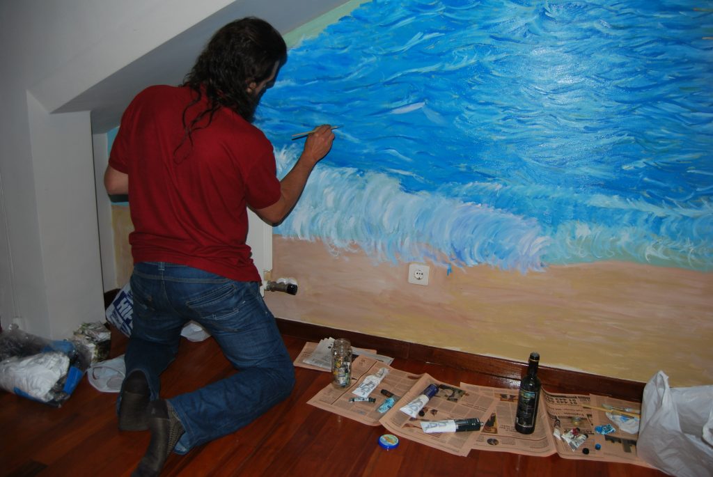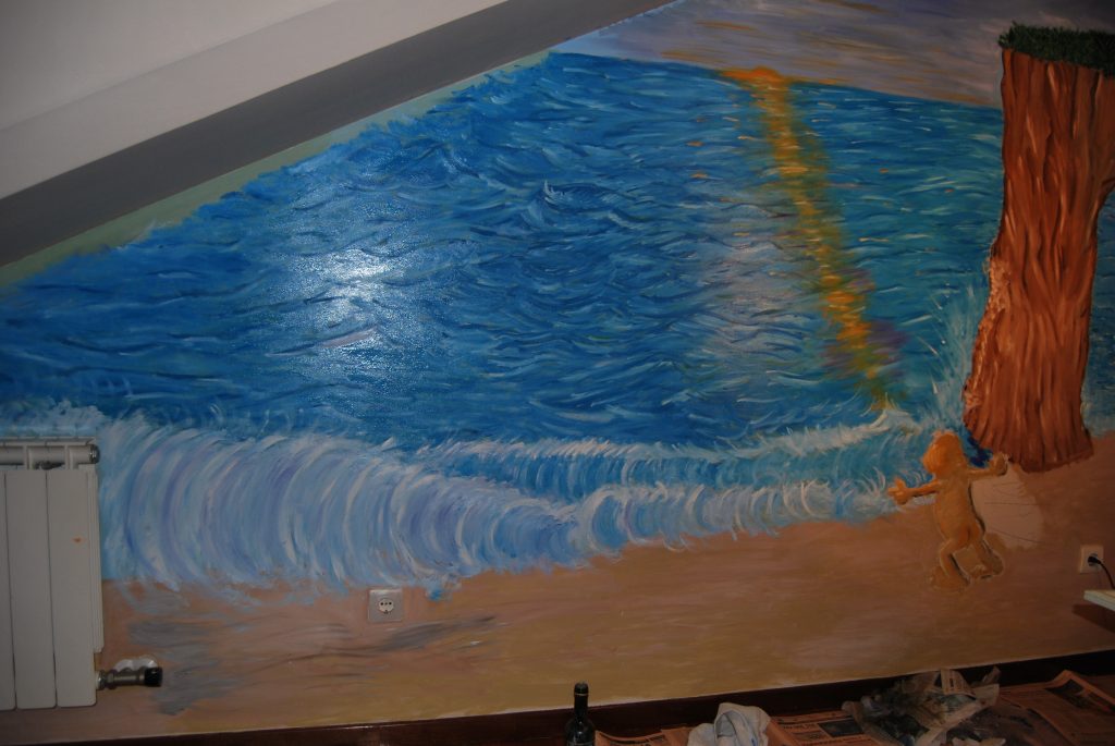 A beira do mar, vin unha Lanchiña, quen..por Fran Del BueypinturaPublicado el abril 9, 2024abril 9, 2024Los comentarios están desactivados Óleo sobre parede con gotele. 2,50 X 5. Fran del Buey
