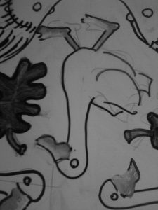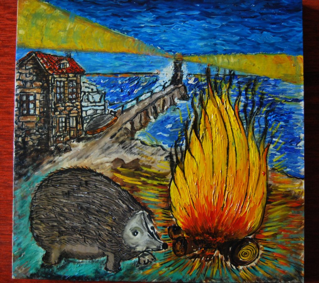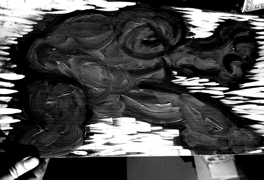 Óleo sobre lenzo. 40 X 60. Fran del Buey Foto modelo do cadro, B/N, 37x 52, papel Ilford Barotone. Revelada a man nunha carretilla de obra no laboratorio da casa encantada . Fran del Buey